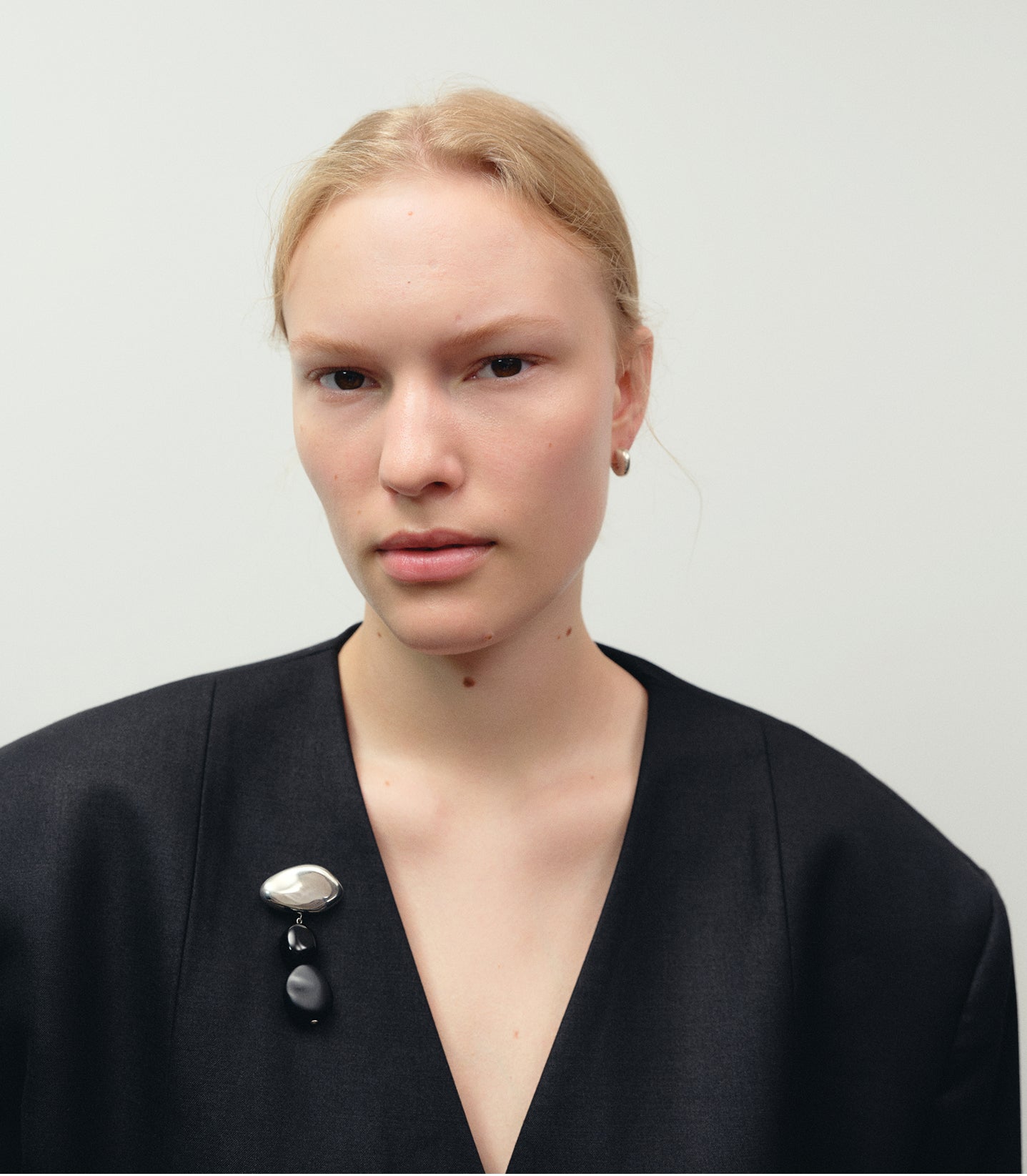 A sculptural piece handcrafted in sterling silver paired with onyx. The Tess Brooch adds a bold adornment to any look. Whether securing a scarf or cinching a garment, it’s a timeless accessory designed to elevate with ease.